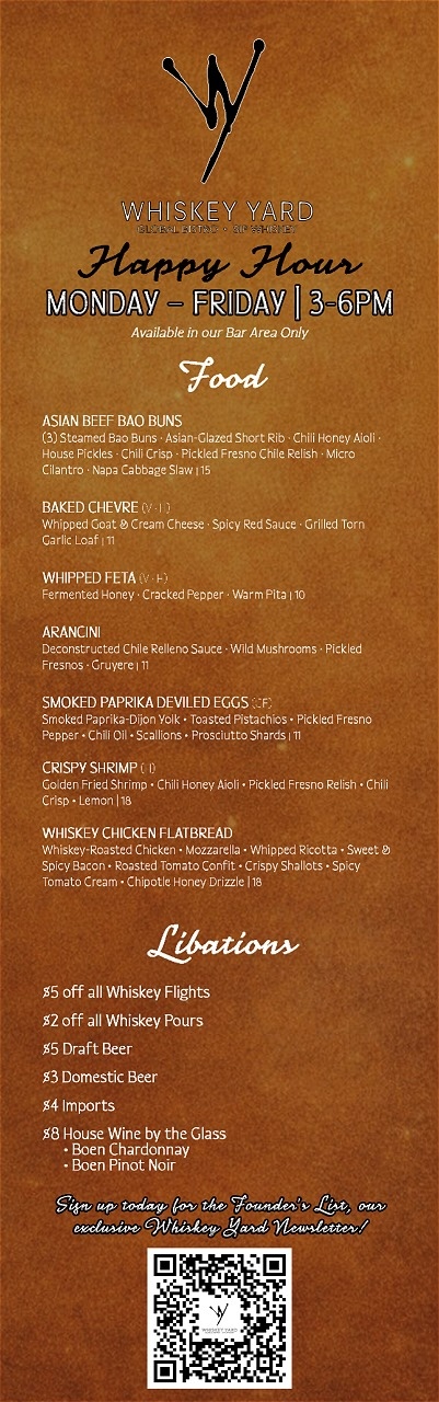 Bring the Whiskey Yard experience to your home or office — download our menu today.